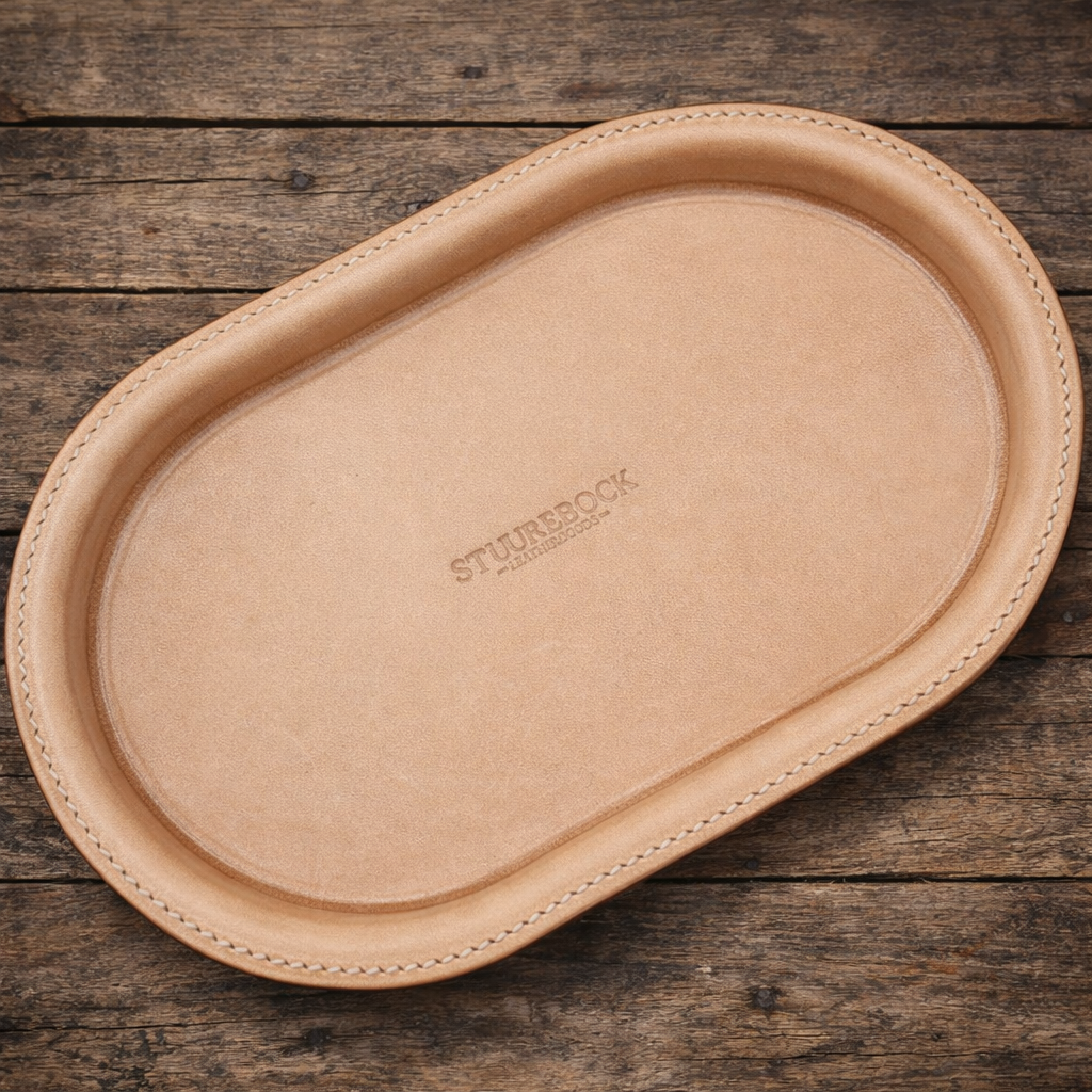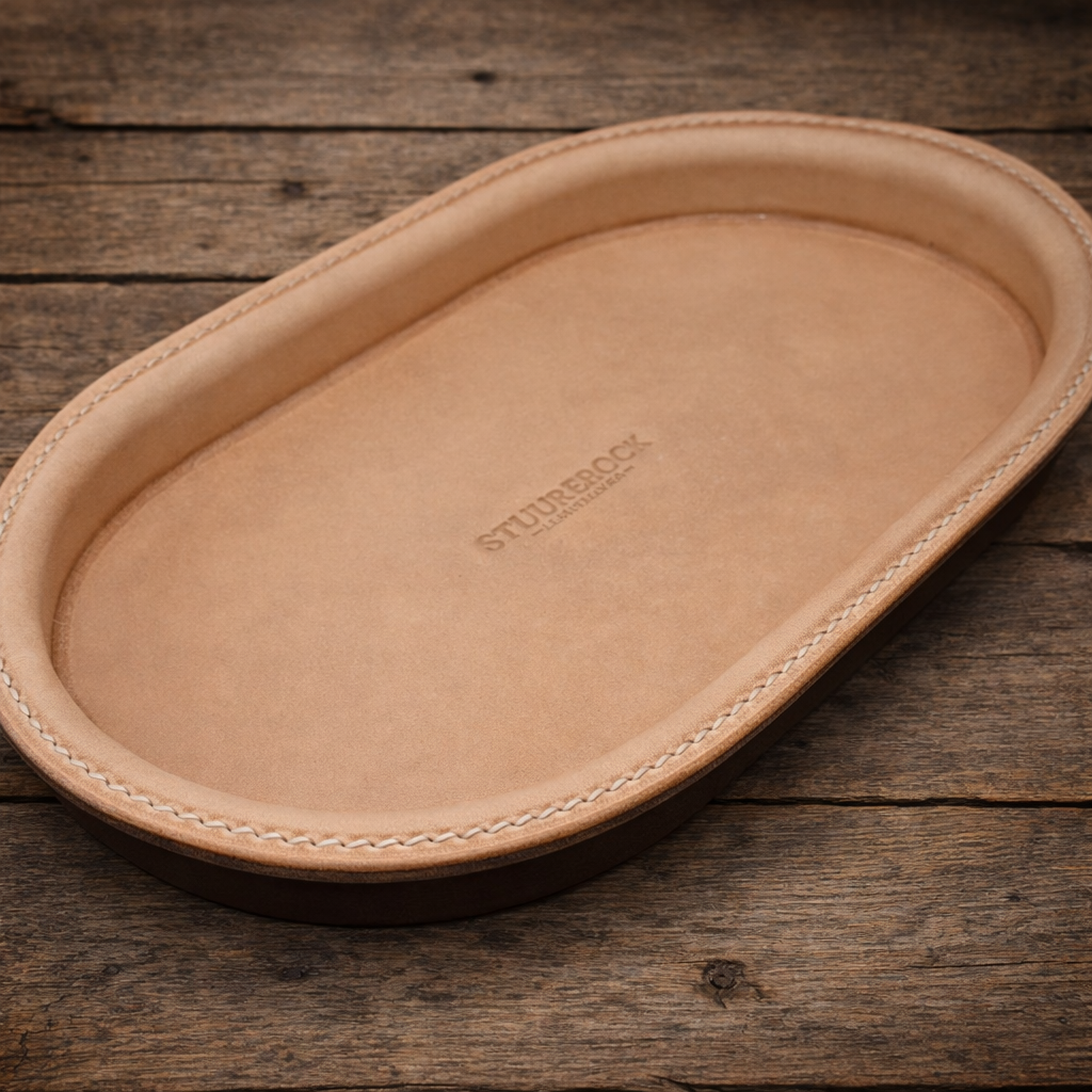 Jede dieser hochwertige Aufbewahrungsschalen wird einzeln gepresst und sorgfältig von Hand mit der Sattlernaht genäht.