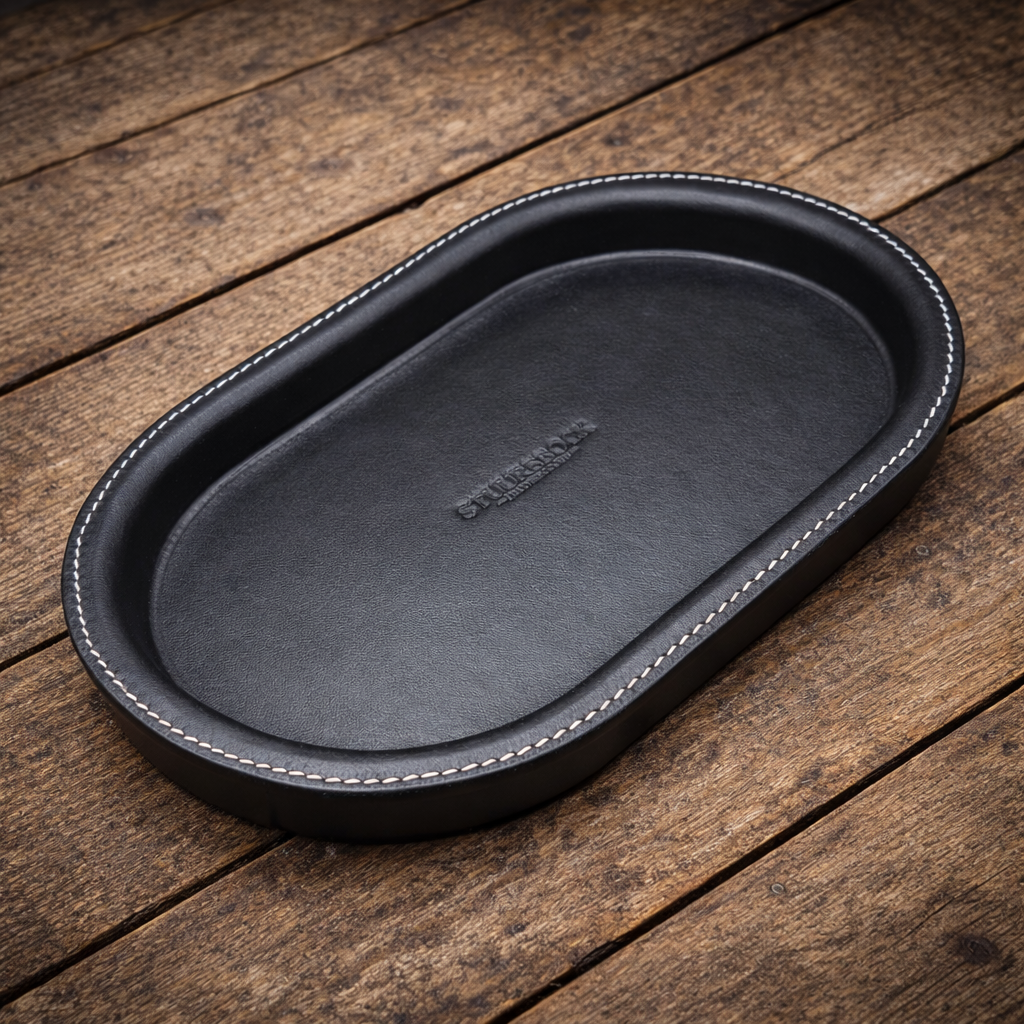 Jede dieser hochwertige Aufbewahrungsschalen wird einzeln gepresst und sorgfältig von Hand mit der Sattlernaht genäht.