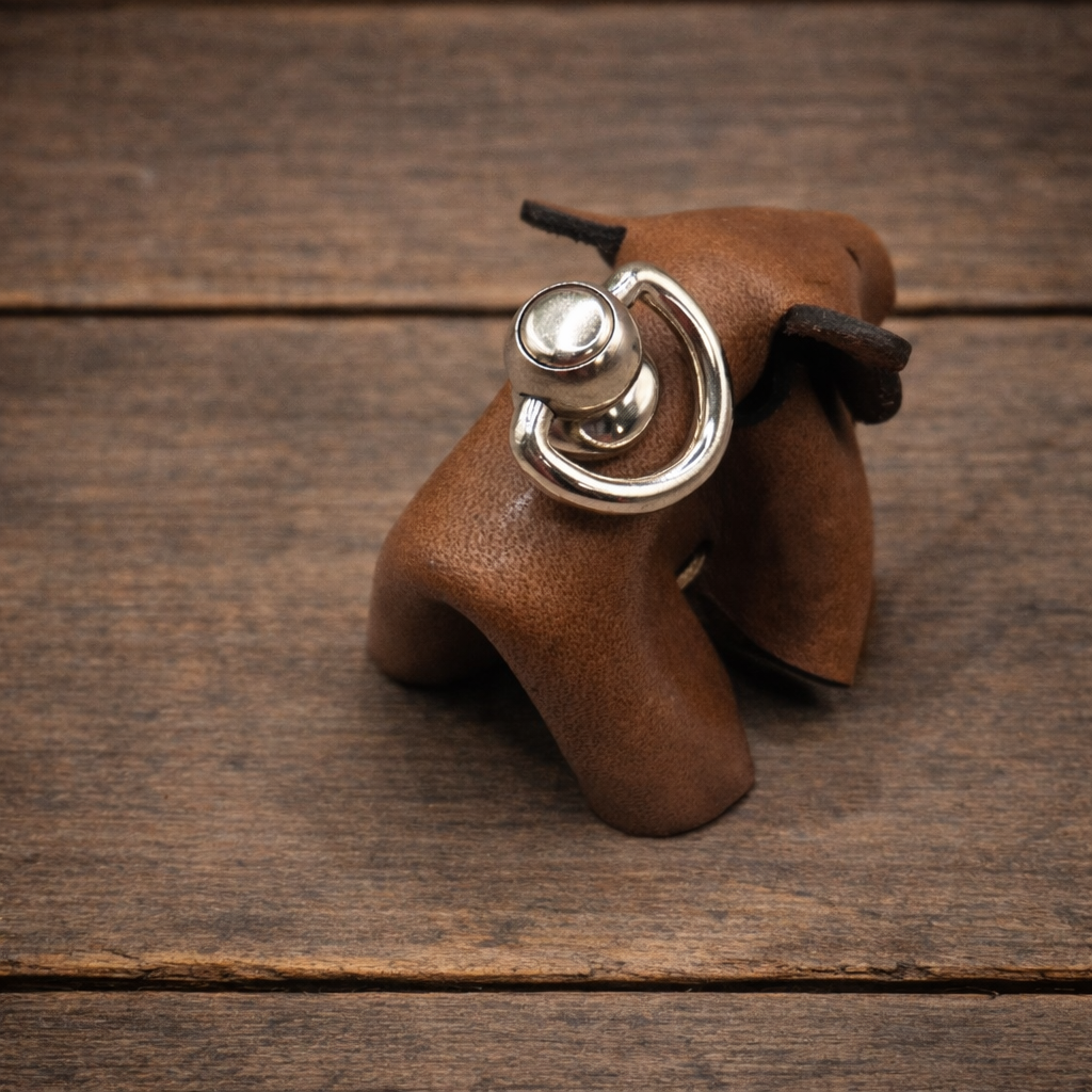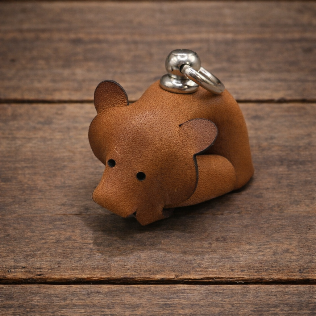 Schlüssel- oder Taschenanhänger Bär aus Rindsleder mit Befestigungsring, von Hand hergestellt.