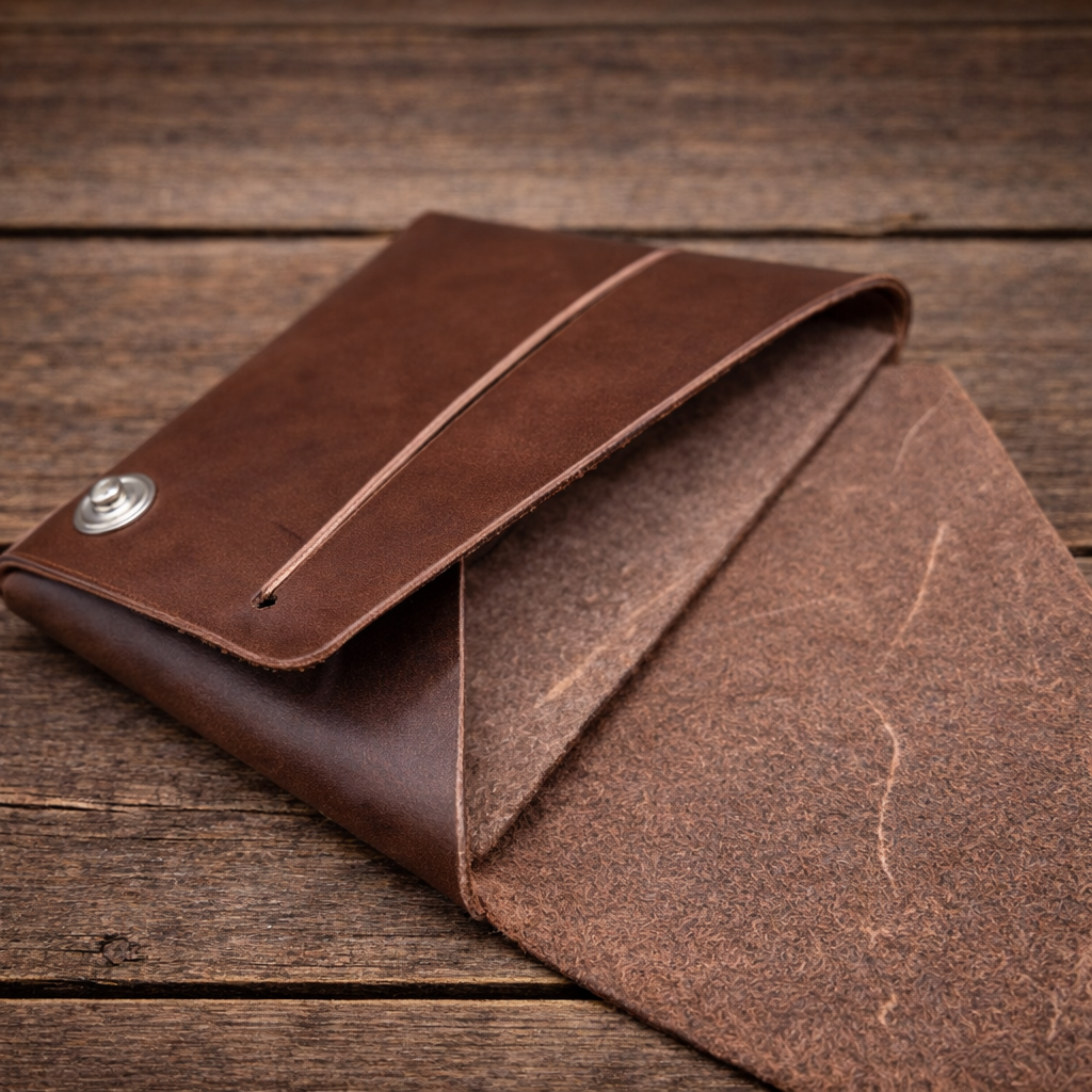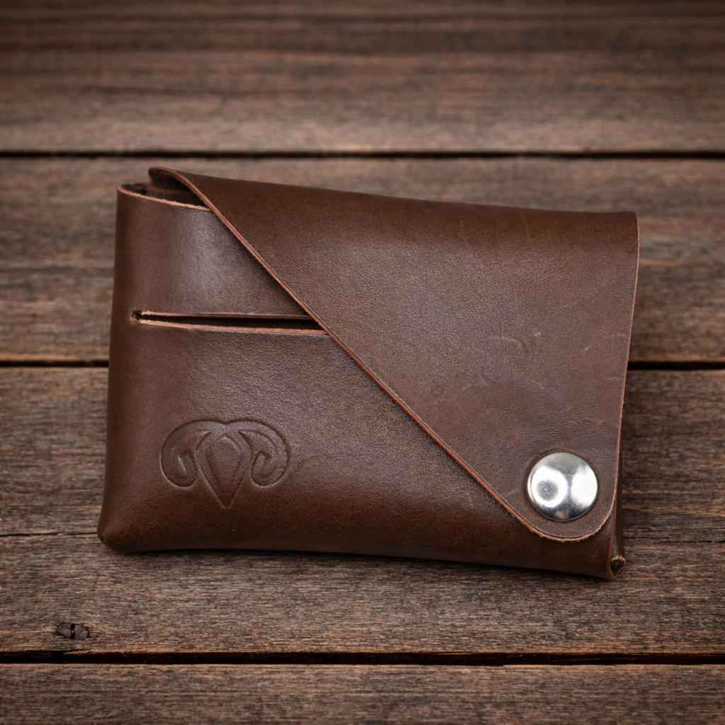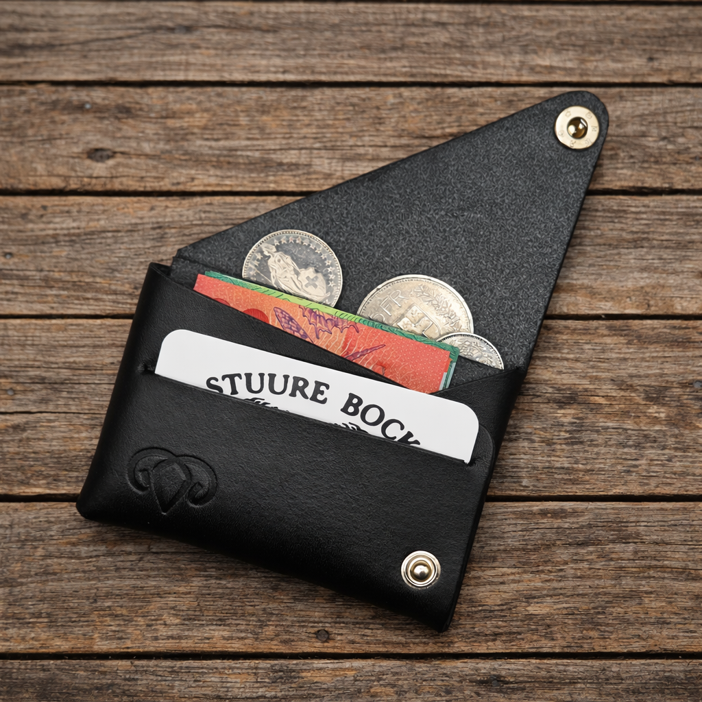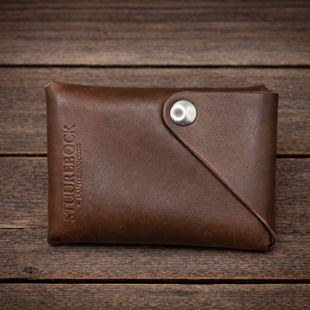 Dieses einzigartige Portemonnaie wird aus nur einem einzigen Stück Leder sowie zwei Druckknöpfen gefertigt. Durch eine raffinierte Falttechnik entsteht ein kompaktes, funktionales Design mit überraschend viel Stauraum.