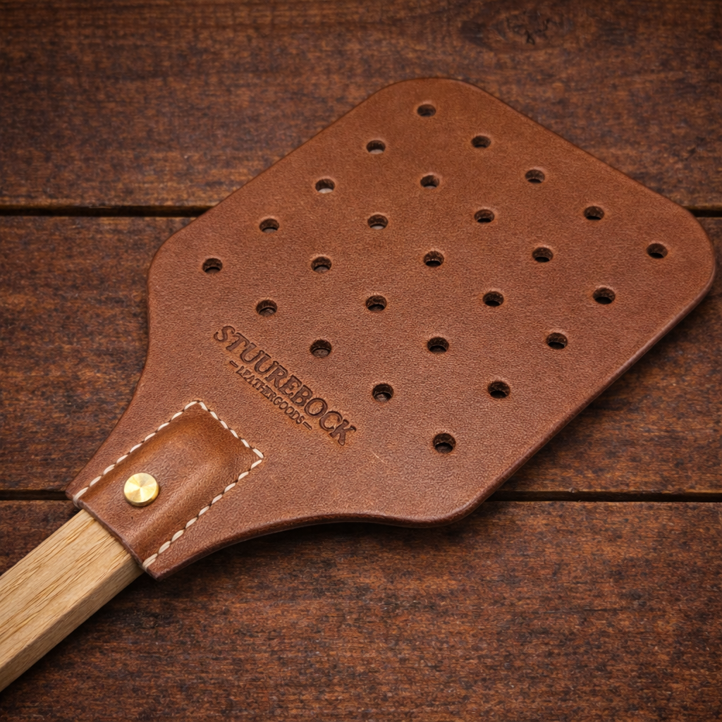 Diese hochwertige Insektenklatsche vereint traditionelle Handwerkskunst, natürliche Materialien und durchdachtes Design. Jede Klatsche wird von Hand gefertigt und sorgfältig genäht, wodurch jedes Stück ein echtes Unikat ist.