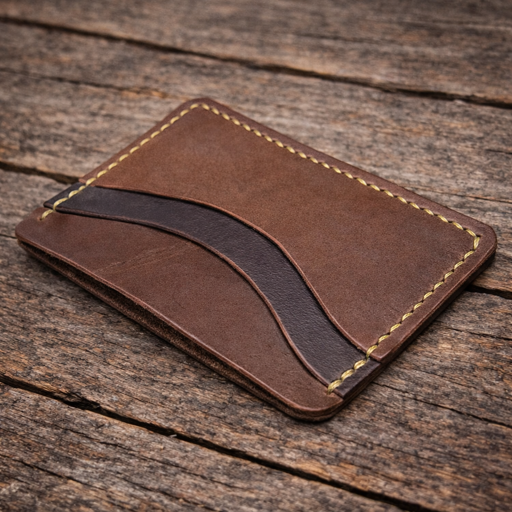 Dieses handgefertigte Kartenetui vereint minimalistisches Design mit traditioneller Lederhandwerkskunst. Jedes Etui wird sorgfältig von Hand vernäht, wodurch ein besonders robustes und langlebiges Produkt entsteht.